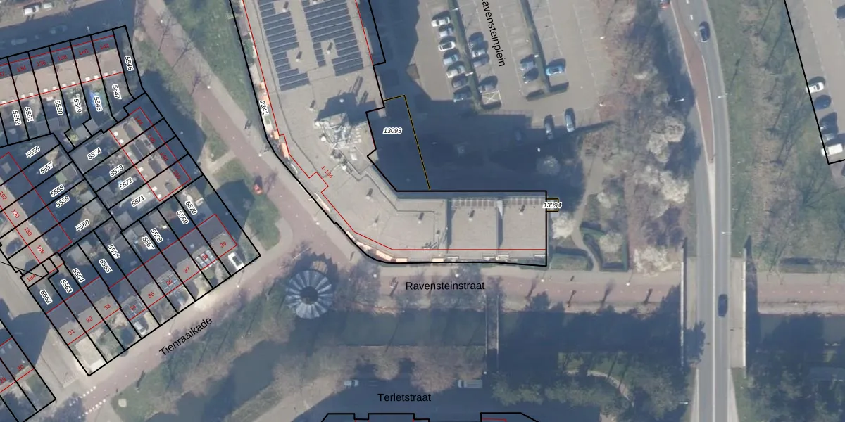 Het perceel waarop Ravensteinstraat 5 staat heeft een oppervlakte van 2587 m². Dit is een zeer groot perceel. De perceeloppervlakte wordt geregistreerd door het Kadaster. Gedetailleerde informatie over de maten van dit perceel kunt u vinden in het rapport Kadastrale kaart met maatvoering van Ravensteinstraat 5.