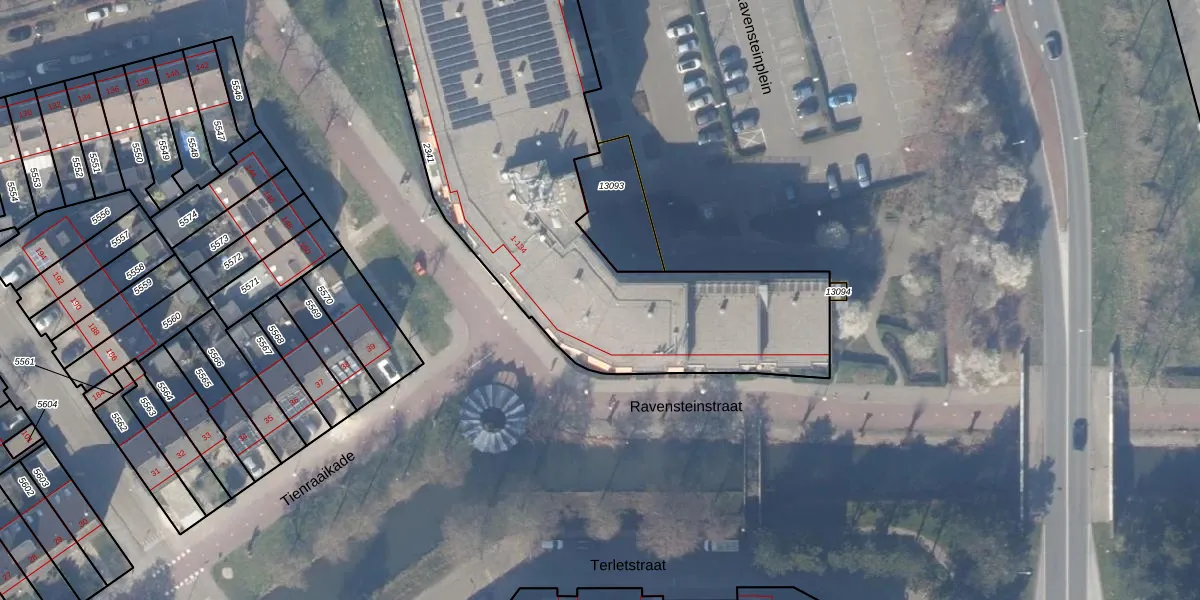 Het perceel waarop Ravensteinstraat 7 staat heeft een oppervlakte van 2587 m². Dit is een zeer groot perceel. De perceeloppervlakte wordt geregistreerd door het Kadaster. Gedetailleerde informatie over de maten van dit perceel kunt u vinden in het rapport Kadastrale kaart met maatvoering van Ravensteinstraat 7.