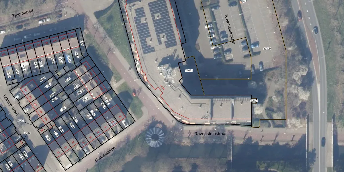 Het perceel waarop Ravensteinstraat 77 staat heeft een oppervlakte van 2587 m². Dit is een zeer groot perceel. De perceeloppervlakte wordt geregistreerd door het Kadaster. Gedetailleerde informatie over de maten van dit perceel kunt u vinden in het rapport Kadastrale kaart met maatvoering van Ravensteinstraat 77.