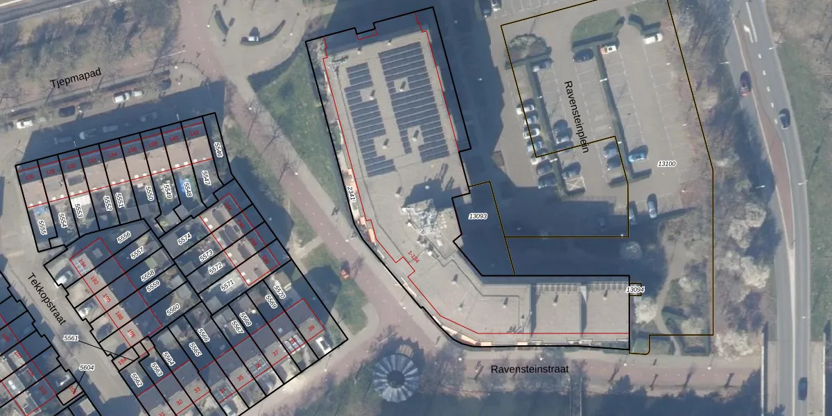 Het perceel waarop Ravensteinstraat 81 staat heeft een oppervlakte van 2587 m². Dit is een zeer groot perceel. De perceeloppervlakte wordt geregistreerd door het Kadaster. Gedetailleerde informatie over de maten van dit perceel kunt u vinden in het rapport Kadastrale kaart met maatvoering van Ravensteinstraat 81.