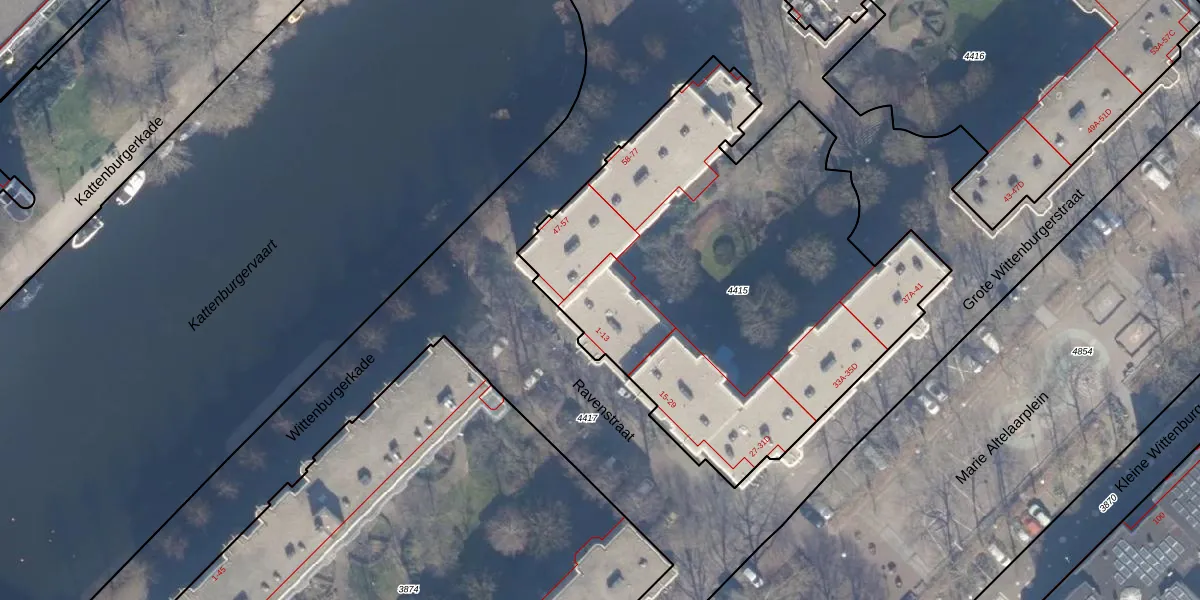Het adres ligt op het perceel ASD10-N-4415, dat zich in de kadastrale gemeente Amsterdam bevindt. Het perceel is met 2664 m² relatief groot. Het gemiddelde ligt in de kadastrale gemeente Amsterdam op 1951,1 m². De grootste perceeloppervlakte in de kadastrale gemeente is 17,2 ha. De kleinste oppervlakte bedraagt 0 m². Op het perceel liggen in totaal 71 adressen. De huidige grenzen van het perceel zijn digitaal in de Basisregistratie Kadaster (BRK) geregistreerd op 29-01-2010.