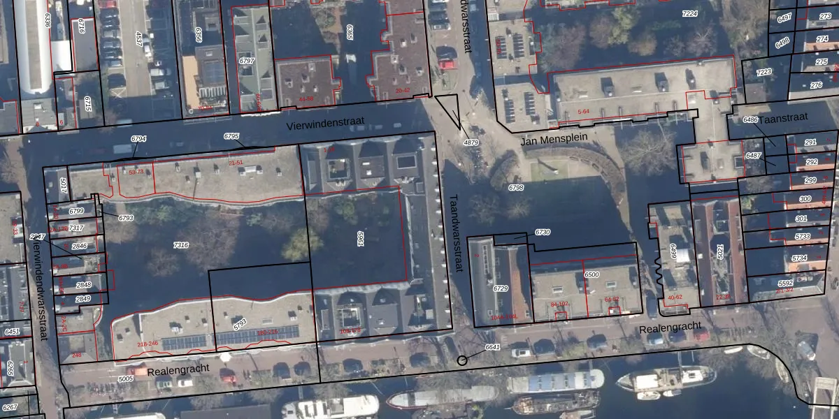 Het adres ligt op het perceel ASD09-M-5961, dat zich in de kadastrale gemeente Amsterdam bevindt. Het perceel is met 1543 m² relatief groot. Het gemiddelde ligt in de kadastrale gemeente Amsterdam op 550,83 m². Het grootste perceel in de kadastrale gemeente is 14,3 ha. Het kleinste perceel heeft een oppervlakte van 1 m². Op het perceel zijn 45 adressen aanwezig. In de Basisregistratie Kadaster (BRK) werden de grenzen van het perceel geregistreerd op 19-11-2019.