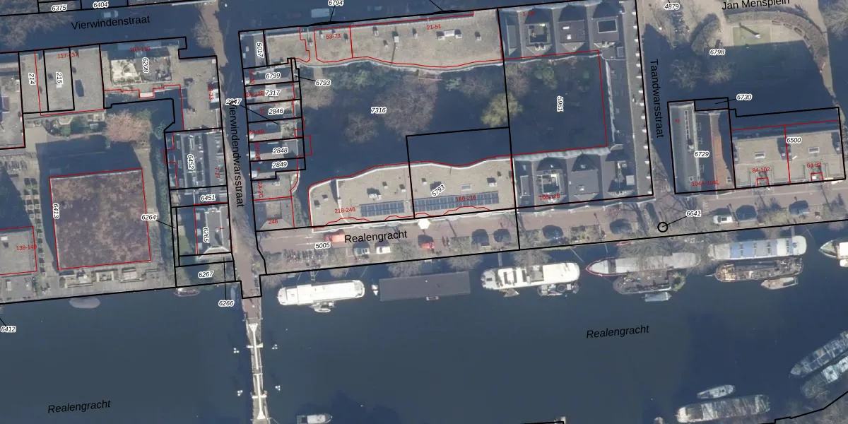 Het perceel waarop Realengracht 210 staat heeft een oppervlakte van 455 m². Dit is een groot perceel. De perceeloppervlakte wordt geregistreerd door het Kadaster. Gedetailleerde informatie over de maten van dit perceel kunt u vinden in het rapport Kadastrale kaart met maatvoering van Realengracht 210.