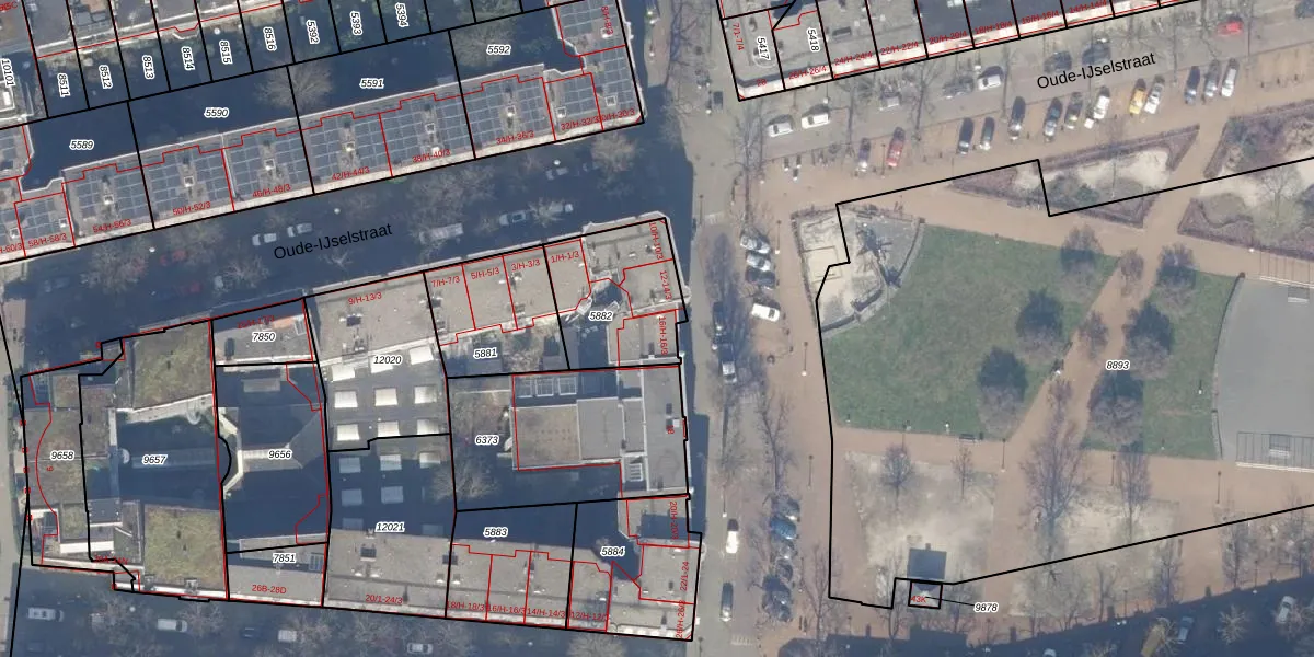 Het adres ligt op het perceel ASD18-V-5882, dat zich in de kadastrale gemeente Amsterdam bevindt. Het perceel is 391 m² groot. Dat is kleiner dan de gemiddelde perceeloppervlakte in Amsterdam, dat op 558,8 m² ligt. Het kleinste perceel in de kadastrale gemeente is 0 m² groot. De grootste perceeloppervlakte is 12,5 ha. Er zijn 16 adressen aanwezig op het perceel. De huidige grenzen van het perceel zijn digitaal in de Basisregistratie Kadaster (BRK) geregistreerd op 29-09-2006.