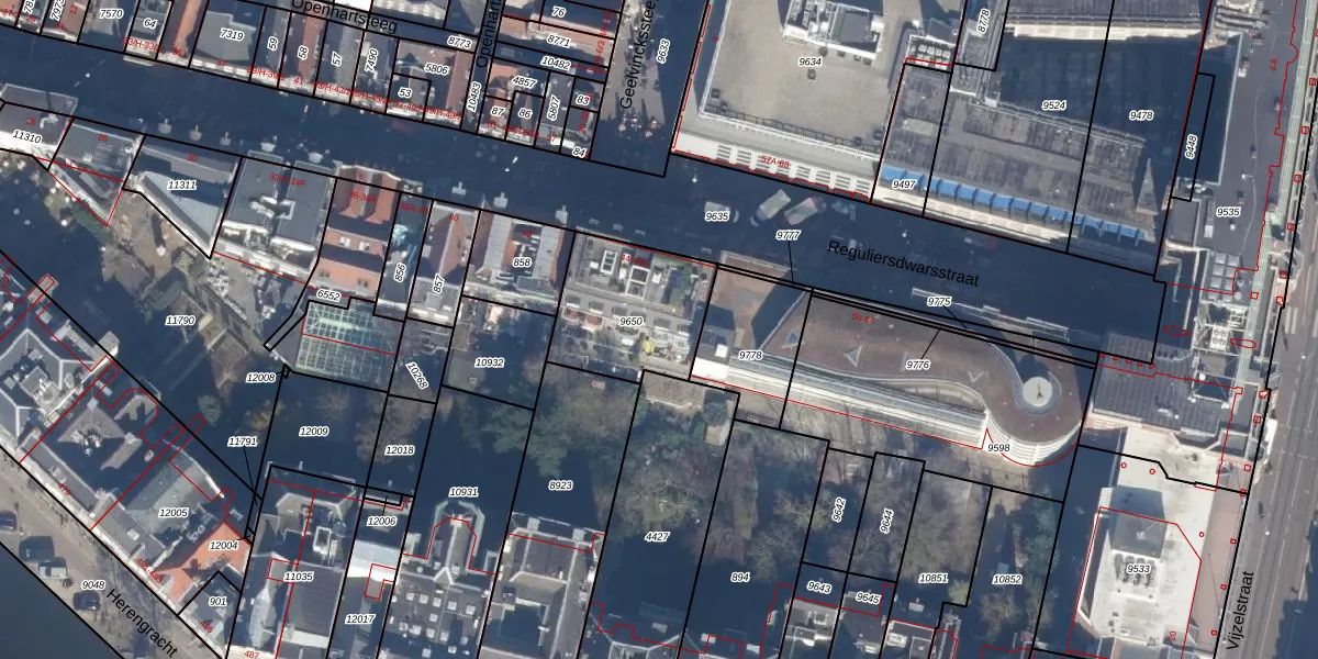 Het perceel waarop Reguliersdwarsstraat 46-F staat heeft een oppervlakte van 435 m². Dit is een groot perceel. De perceeloppervlakte wordt geregistreerd door het Kadaster. Gedetailleerde informatie over de maten van dit perceel kunt u vinden in het rapport Kadastrale kaart met maatvoering van Reguliersdwarsstraat 46-F.