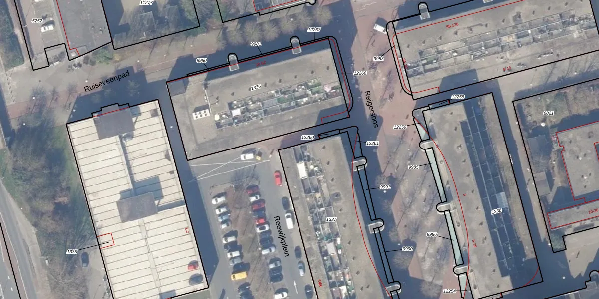 Het perceel waarop Reigersbos 10 staat heeft een oppervlakte van 1600 m². Dit is een zeer groot perceel. De perceeloppervlakte wordt geregistreerd door het Kadaster. Gedetailleerde informatie over de maten van dit perceel kunt u vinden in het rapport Kadastrale kaart met maatvoering van Reigersbos 10.