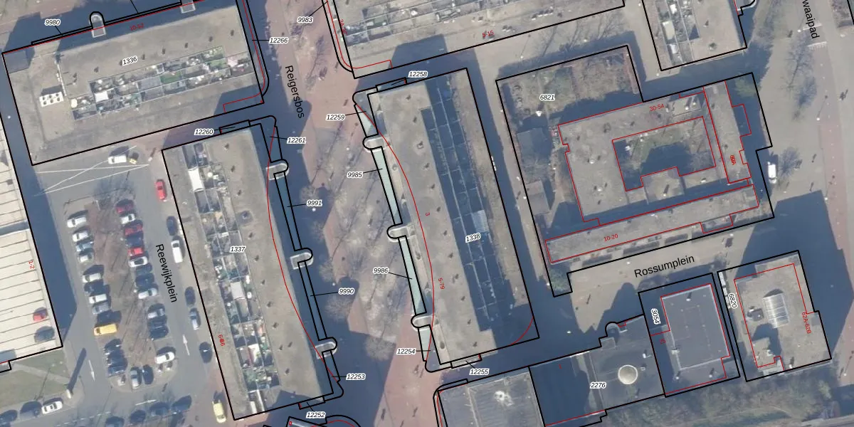 Het perceel waarop Reigersbos 33 staat heeft een oppervlakte van 1601 m². Dit is een zeer groot perceel. De perceeloppervlakte wordt geregistreerd door het Kadaster. Gedetailleerde informatie over de maten van dit perceel kunt u vinden in het rapport Kadastrale kaart met maatvoering van Reigersbos 33.
