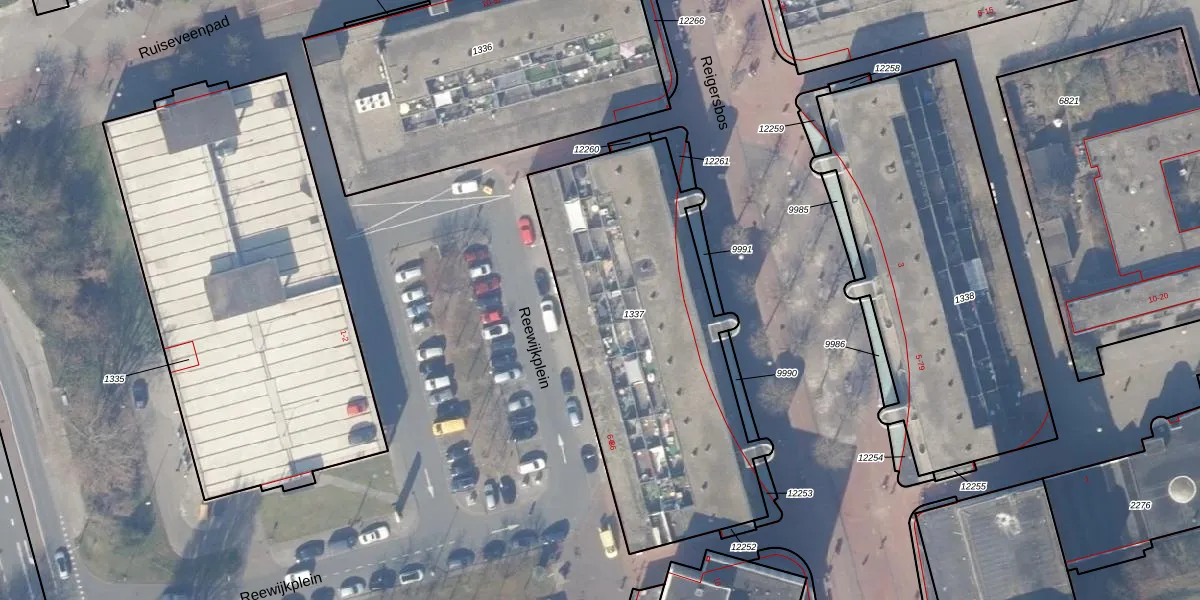 Het perceel waarop Reigersbos 36 staat heeft een oppervlakte van 1600 m². Dit is een zeer groot perceel. De perceeloppervlakte wordt geregistreerd door het Kadaster. Gedetailleerde informatie over de maten van dit perceel kunt u vinden in het rapport Kadastrale kaart met maatvoering van Reigersbos 36.