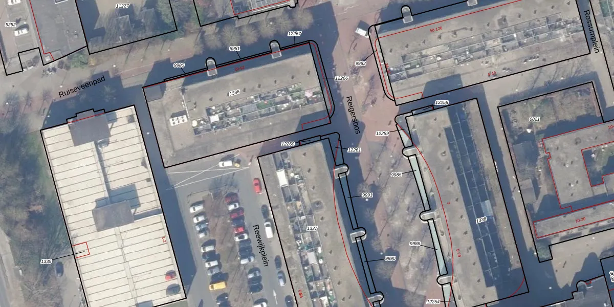Het perceel waarop Reigersbos 6 staat heeft een oppervlakte van 1600 m². Dit is een zeer groot perceel. De perceeloppervlakte wordt geregistreerd door het Kadaster. Gedetailleerde informatie over de maten van dit perceel kunt u vinden in het rapport Kadastrale kaart met maatvoering van Reigersbos 6.