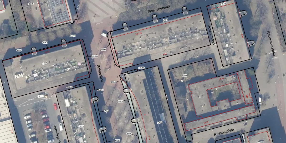 Het perceel waarop Reigersbos 9 staat heeft een oppervlakte van 1601 m². Dit is een zeer groot perceel. De perceeloppervlakte wordt geregistreerd door het Kadaster. Gedetailleerde informatie over de maten van dit perceel kunt u vinden in het rapport Kadastrale kaart met maatvoering van Reigersbos 9.