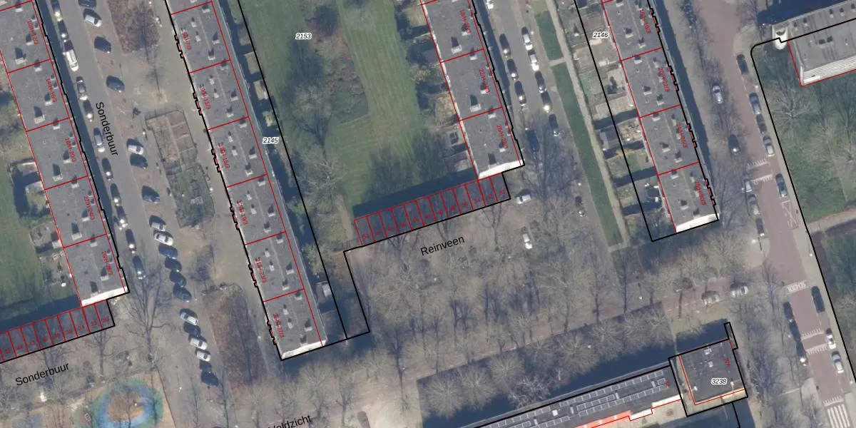 Het perceel waarop Reinveen 42 staat heeft een oppervlakte van 7332 m². Dit is een zeer groot perceel. De perceeloppervlakte wordt geregistreerd door het Kadaster. Gedetailleerde informatie over de maten van dit perceel kunt u vinden in het rapport Kadastrale kaart met maatvoering van Reinveen 42.