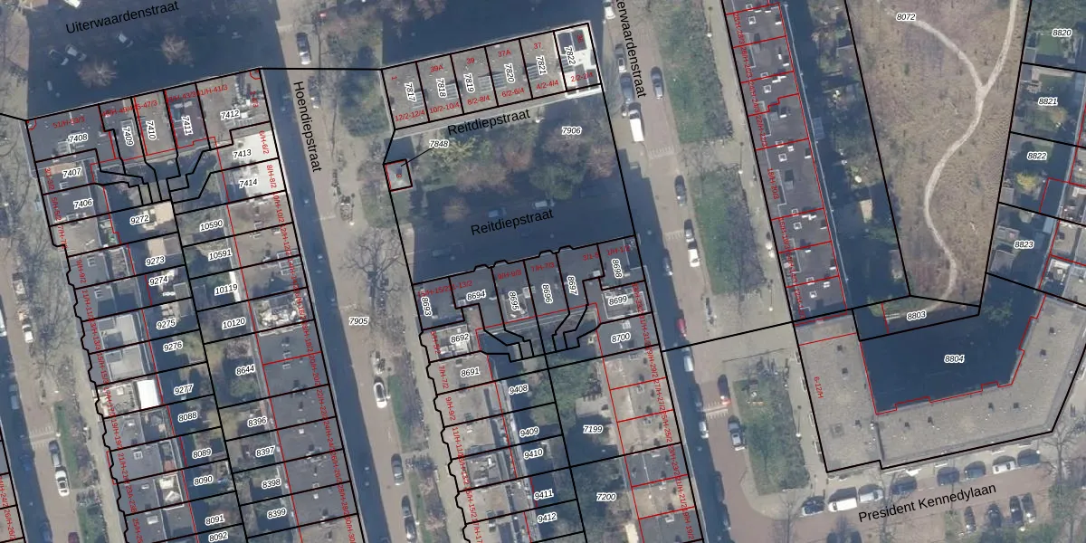 Reitdiepstraat 7-H is gelegen op kadastraal perceel ASD18V8696. Deze kadastrale aanduiding is uniek en wordt gebruikt door het Kadaster om eigendomsrechten en andere zakelijke rechten vast te leggen. Het perceel maakt onderdeel uit van de kadastrale gemeente Amsterdam.