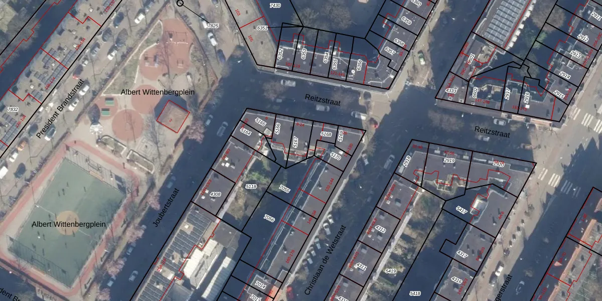 Reitzstraat 20 is gelegen op kadastraal perceel ASD19W5167. Deze kadastrale aanduiding is uniek en wordt gebruikt door het Kadaster om eigendomsrechten en andere zakelijke rechten vast te leggen. Het perceel maakt onderdeel uit van de kadastrale gemeente Amsterdam.