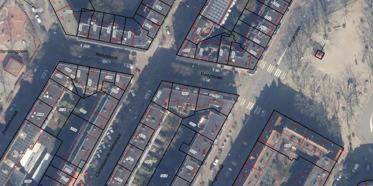 Het perceel waarop Reitzstraat 52 staat heeft een oppervlakte van 250 m². Dit is een middelgroot perceel. De perceeloppervlakte wordt geregistreerd door het Kadaster. Gedetailleerde informatie over de maten van dit perceel kunt u vinden in het rapport Kadastrale kaart met maatvoering van Reitzstraat 52.