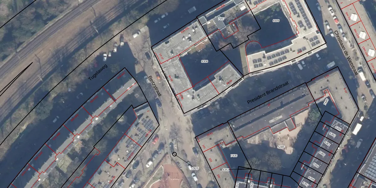 Reitzstraat 7-A is gelegen op kadastraal perceel ASD19W8308. Deze kadastrale aanduiding is uniek en wordt gebruikt door het Kadaster om eigendomsrechten en andere zakelijke rechten vast te leggen. Het perceel maakt onderdeel uit van de kadastrale gemeente Amsterdam.
