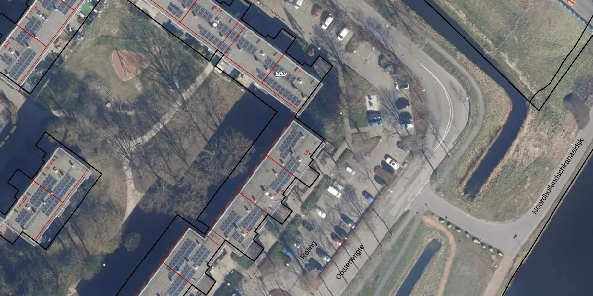 Het adres is gelegen op perceel 2437 in de sectie AQ en de kadastrale gemeente Amsterdam. De kadastrale aanduiding is aldus ASD36-AQ-2437. De oppervlakte van het perceel is 4575 m². Dat is groter dan gemiddeld in Amsterdam, waar de gemiddelde perceeloppervlakte op 2946,44 m² ligt. De grootste perceeloppervlakte in de kadastrale gemeente is 37,9 ha. De kleinste oppervlakte bedraagt 2 m². Er zijn 112 adressen aanwezig op het perceel. De huidige grenzen van het perceel zijn digitaal in de Basisregistratie Kadaster (BRK) geregistreerd op 11-12-2006.
