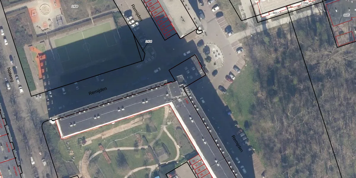 Het perceel waarop Remijden 150 staat heeft een oppervlakte van 6654 m². Dit is een zeer groot perceel. De perceeloppervlakte wordt geregistreerd door het Kadaster. Gedetailleerde informatie over de maten van dit perceel kunt u vinden in het rapport Kadastrale kaart met maatvoering van Remijden 150.
