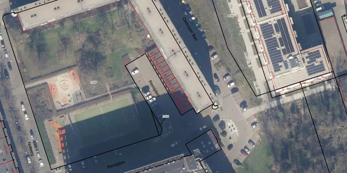 Het perceel waarop Remijden 191 staat heeft een oppervlakte van 7681 m². Dit is een zeer groot perceel. De perceeloppervlakte wordt geregistreerd door het Kadaster. Gedetailleerde informatie over de maten van dit perceel kunt u vinden in het rapport Kadastrale kaart met maatvoering van Remijden 191.