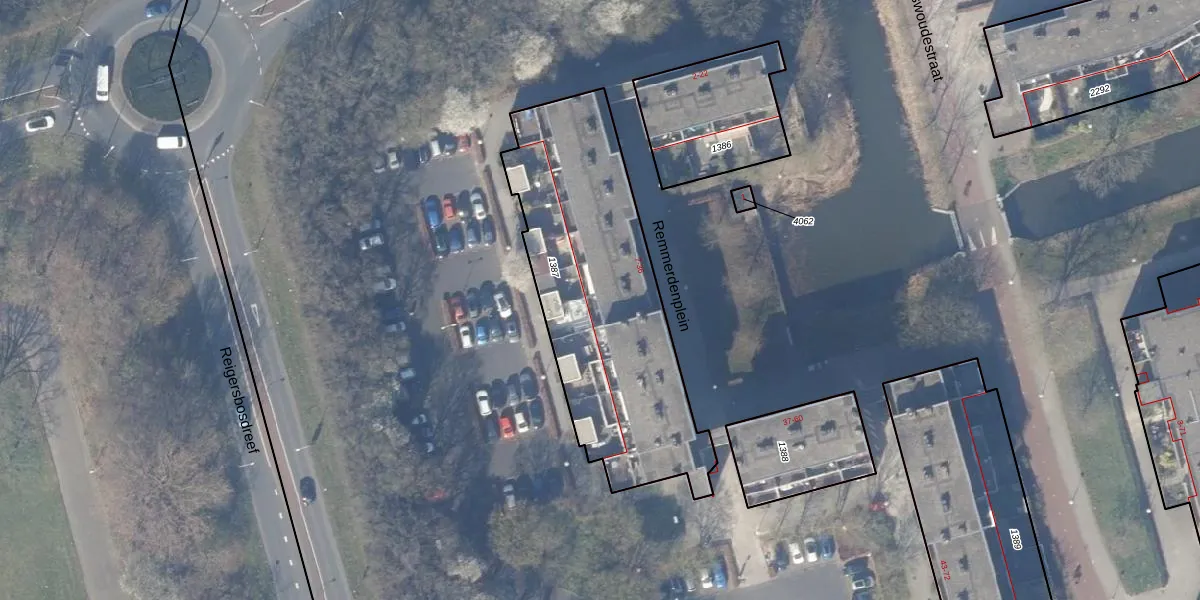 Het perceel waarop Remmerdenplein 36 staat heeft een oppervlakte van 1268 m². Dit is een zeer groot perceel. De perceeloppervlakte wordt geregistreerd door het Kadaster. Gedetailleerde informatie over de maten van dit perceel kunt u vinden in het rapport Kadastrale kaart met maatvoering van Remmerdenplein 36.