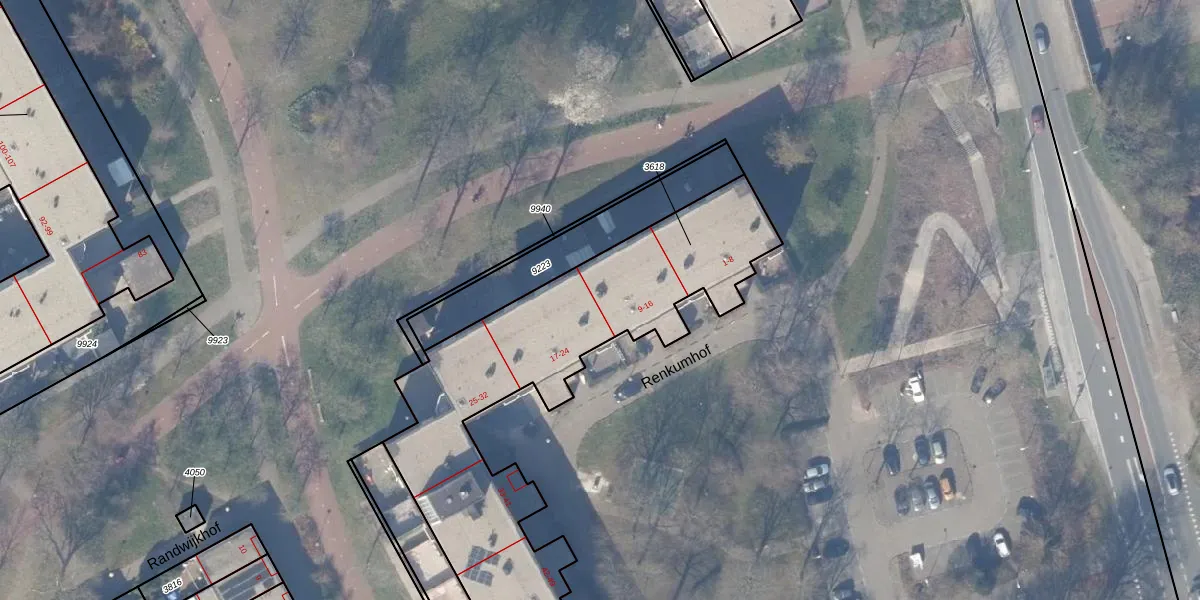 Het perceel waarop Renkumhof 12 staat heeft een oppervlakte van 2120 m². Dit is een zeer groot perceel. De perceeloppervlakte wordt geregistreerd door het Kadaster. Gedetailleerde informatie over de maten van dit perceel kunt u vinden in het rapport Kadastrale kaart met maatvoering van Renkumhof 12.