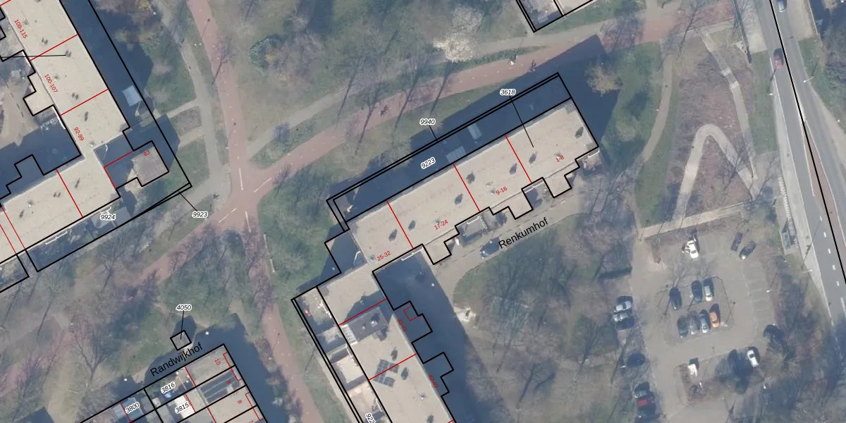 Het perceel waarop Renkumhof 19 staat heeft een oppervlakte van 2120 m². Dit is een zeer groot perceel. De perceeloppervlakte wordt geregistreerd door het Kadaster. Gedetailleerde informatie over de maten van dit perceel kunt u vinden in het rapport Kadastrale kaart met maatvoering van Renkumhof 19.