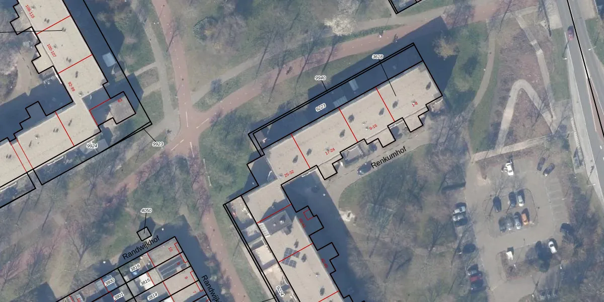 Het perceel waarop Renkumhof 22 staat heeft een oppervlakte van 2120 m². Dit is een zeer groot perceel. De perceeloppervlakte wordt geregistreerd door het Kadaster. Gedetailleerde informatie over de maten van dit perceel kunt u vinden in het rapport Kadastrale kaart met maatvoering van Renkumhof 22.