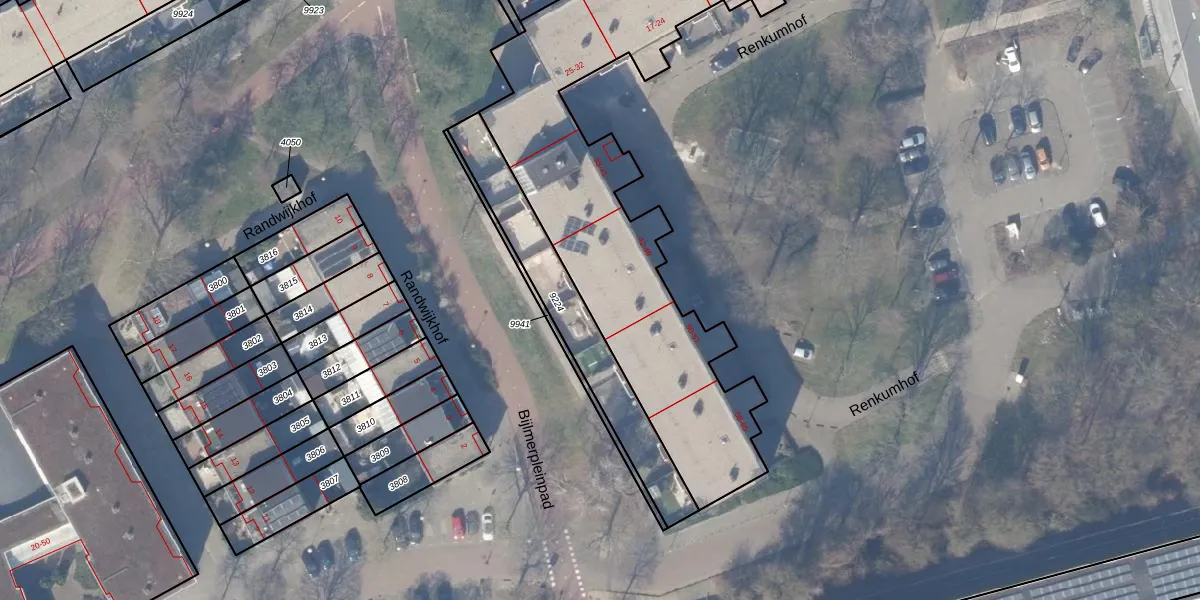 Het perceel waarop Renkumhof 48 staat heeft een oppervlakte van 2120 m². Dit is een zeer groot perceel. De perceeloppervlakte wordt geregistreerd door het Kadaster. Gedetailleerde informatie over de maten van dit perceel kunt u vinden in het rapport Kadastrale kaart met maatvoering van Renkumhof 48.