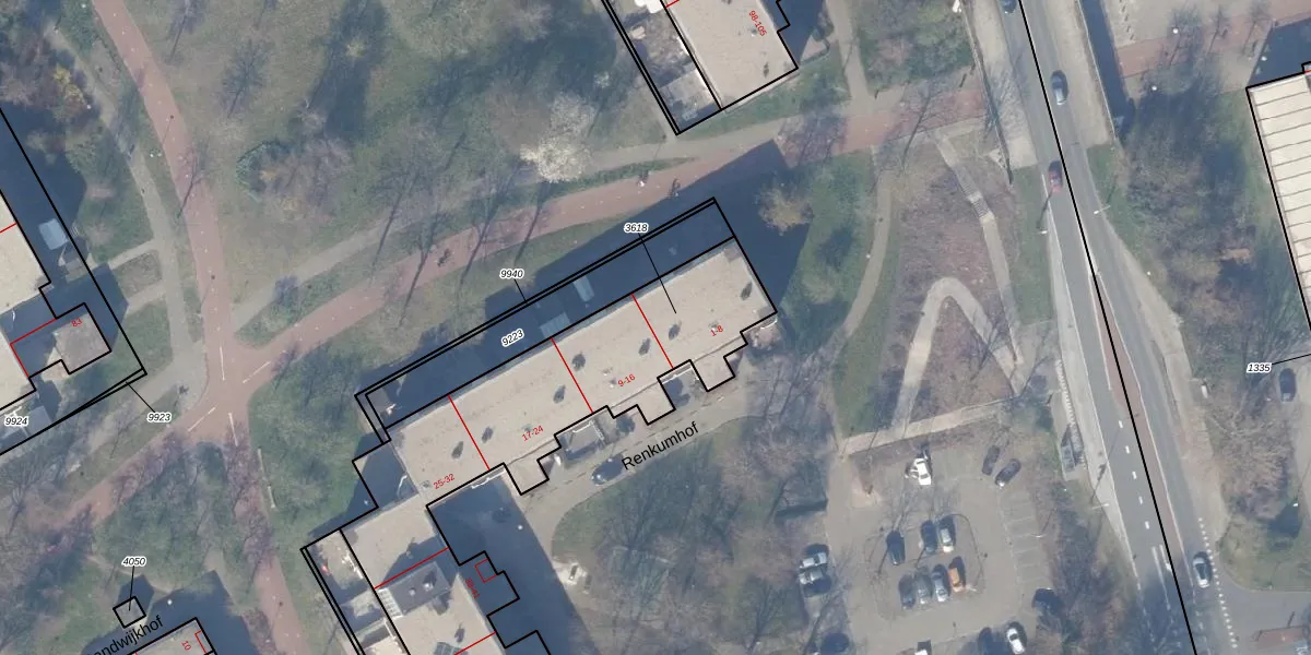 Het perceel waarop Renkumhof 5 staat heeft een oppervlakte van 2120 m². Dit is een zeer groot perceel. De perceeloppervlakte wordt geregistreerd door het Kadaster. Gedetailleerde informatie over de maten van dit perceel kunt u vinden in het rapport Kadastrale kaart met maatvoering van Renkumhof 5.