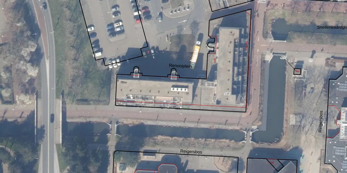 Het perceel waarop Renooiplein 19 staat heeft een oppervlakte van 2303 m². Dit is een zeer groot perceel. De perceeloppervlakte wordt geregistreerd door het Kadaster. Gedetailleerde informatie over de maten van dit perceel kunt u vinden in het rapport Kadastrale kaart met maatvoering van Renooiplein 19.