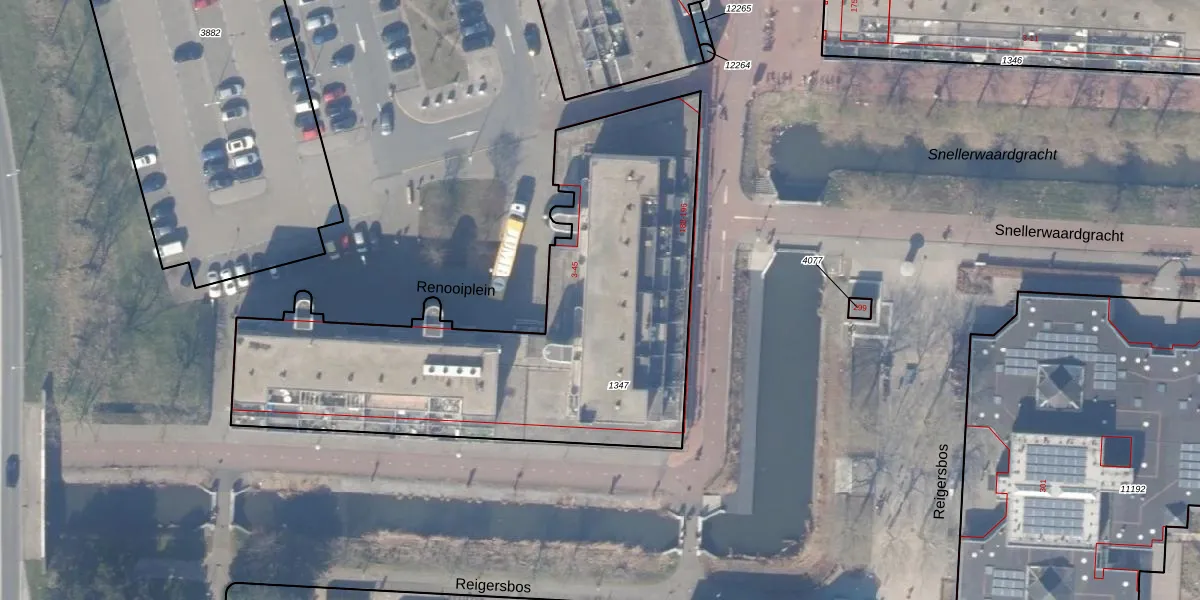 Het perceel waarop Renooiplein 36 staat heeft een oppervlakte van 2303 m². Dit is een zeer groot perceel. De perceeloppervlakte wordt geregistreerd door het Kadaster. Gedetailleerde informatie over de maten van dit perceel kunt u vinden in het rapport Kadastrale kaart met maatvoering van Renooiplein 36.