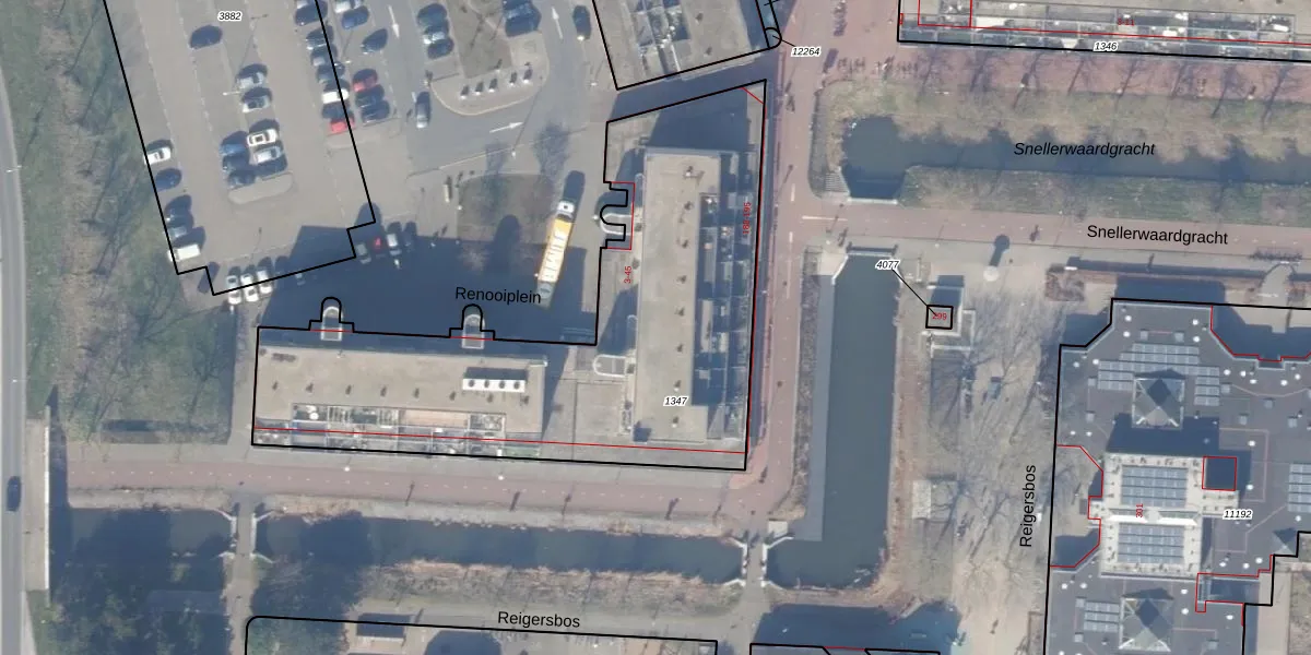 Het perceel waarop Renooiplein 37 staat heeft een oppervlakte van 2303 m². Dit is een zeer groot perceel. De perceeloppervlakte wordt geregistreerd door het Kadaster. Gedetailleerde informatie over de maten van dit perceel kunt u vinden in het rapport Kadastrale kaart met maatvoering van Renooiplein 37.