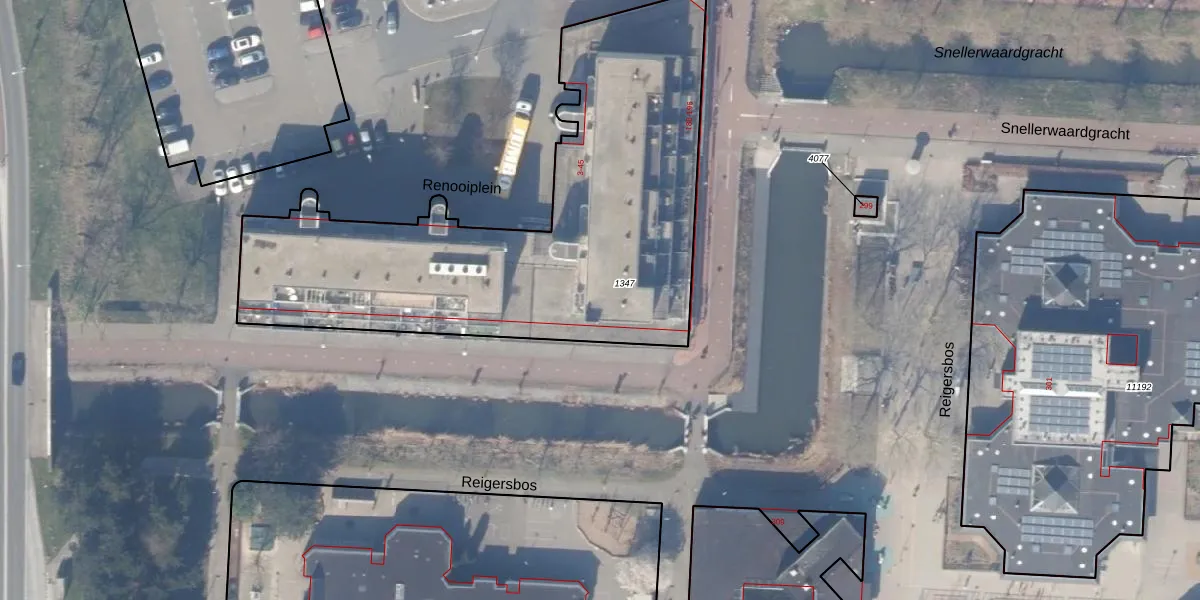 Het perceel waarop Renooiplein 43 staat heeft een oppervlakte van 2303 m². Dit is een zeer groot perceel. De perceeloppervlakte wordt geregistreerd door het Kadaster. Gedetailleerde informatie over de maten van dit perceel kunt u vinden in het rapport Kadastrale kaart met maatvoering van Renooiplein 43.