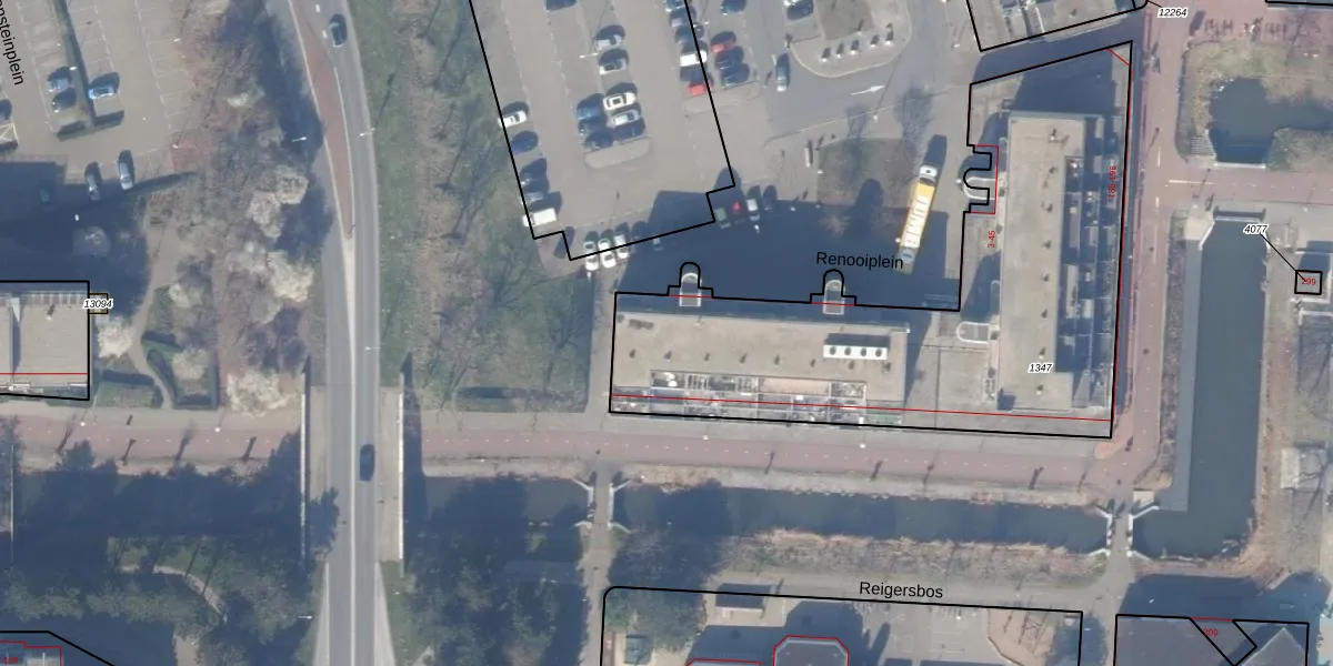 Het perceel waarop Renooiplein 7 staat heeft een oppervlakte van 2303 m². Dit is een zeer groot perceel. De perceeloppervlakte wordt geregistreerd door het Kadaster. Gedetailleerde informatie over de maten van dit perceel kunt u vinden in het rapport Kadastrale kaart met maatvoering van Renooiplein 7.