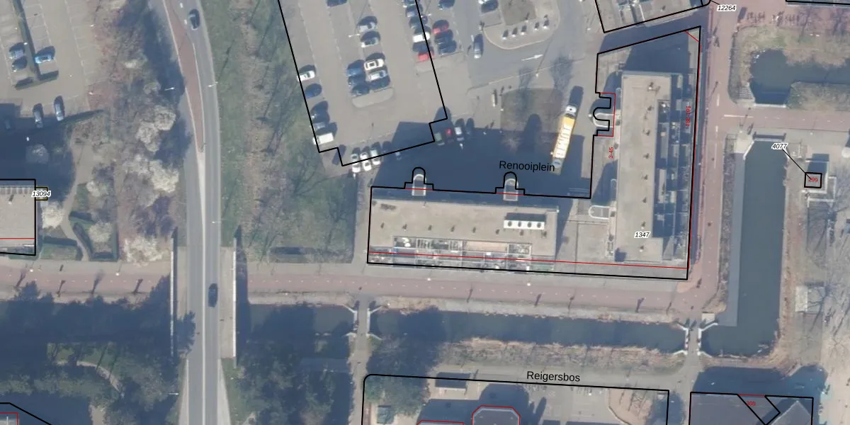 Het perceel waarop Renooiplein 9 staat heeft een oppervlakte van 2303 m². Dit is een zeer groot perceel. De perceeloppervlakte wordt geregistreerd door het Kadaster. Gedetailleerde informatie over de maten van dit perceel kunt u vinden in het rapport Kadastrale kaart met maatvoering van Renooiplein 9.