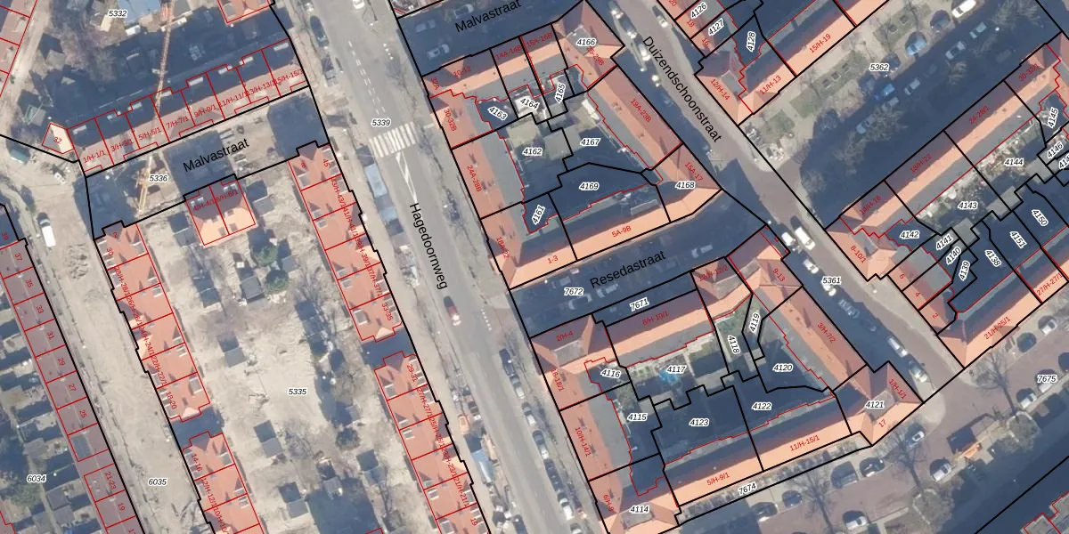 Het perceel waarop Resedastraat 1 staat heeft een oppervlakte van 198 m². Dit is een middelgroot perceel. De perceeloppervlakte wordt geregistreerd door het Kadaster. Gedetailleerde informatie over de maten van dit perceel kunt u vinden in het rapport Kadastrale kaart met maatvoering van Resedastraat 1.