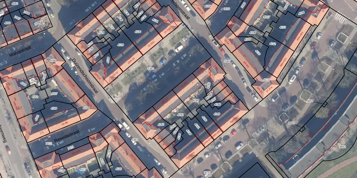 Resedastraat 24 is gelegen op kadastraal perceel ASD07K4144. Deze kadastrale aanduiding is uniek en wordt gebruikt door het Kadaster om eigendomsrechten en andere zakelijke rechten vast te leggen. Het perceel maakt onderdeel uit van de kadastrale gemeente Amsterdam.