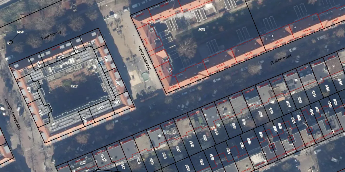 Het perceel waarop Retiefstraat 28-D staat heeft een oppervlakte van 3189 m². Dit is een zeer groot perceel. De perceeloppervlakte wordt geregistreerd door het Kadaster. Gedetailleerde informatie over de maten van dit perceel kunt u vinden in het rapport Kadastrale kaart met maatvoering van Retiefstraat 28-D.