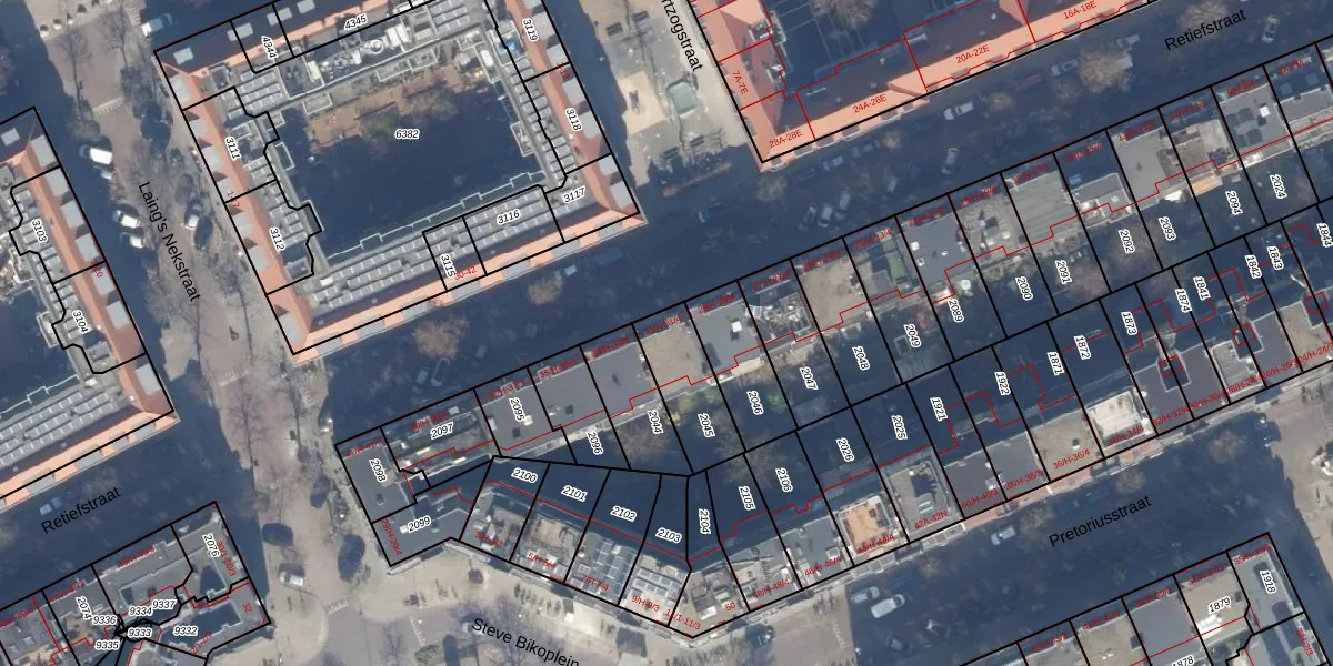 Het perceel waarop Retiefstraat 31-H staat heeft een oppervlakte van 212 m². Dit is een middelgroot perceel. De perceeloppervlakte wordt geregistreerd door het Kadaster. Gedetailleerde informatie over de maten van dit perceel kunt u vinden in het rapport Kadastrale kaart met maatvoering van Retiefstraat 31-H.