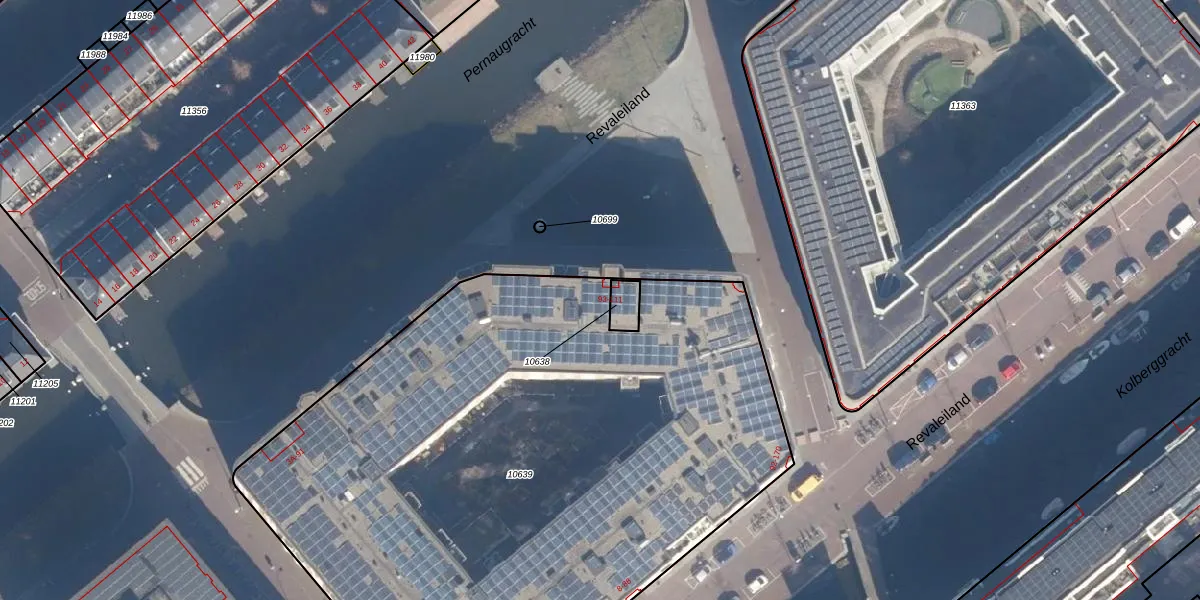 Het perceel waarop Revaleiland 107 staat heeft een oppervlakte van 4366 m². Dit is een zeer groot perceel. De perceeloppervlakte wordt geregistreerd door het Kadaster. Gedetailleerde informatie over de maten van dit perceel kunt u vinden in het rapport Kadastrale kaart met maatvoering van Revaleiland 107.