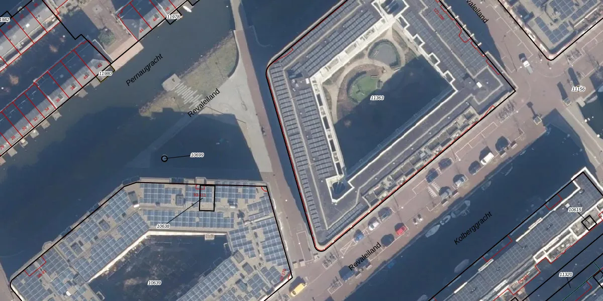 Het perceel waarop Revaleiland 123 staat heeft een oppervlakte van 4265 m². Dit is een zeer groot perceel. De perceeloppervlakte wordt geregistreerd door het Kadaster. Gedetailleerde informatie over de maten van dit perceel kunt u vinden in het rapport Kadastrale kaart met maatvoering van Revaleiland 123.