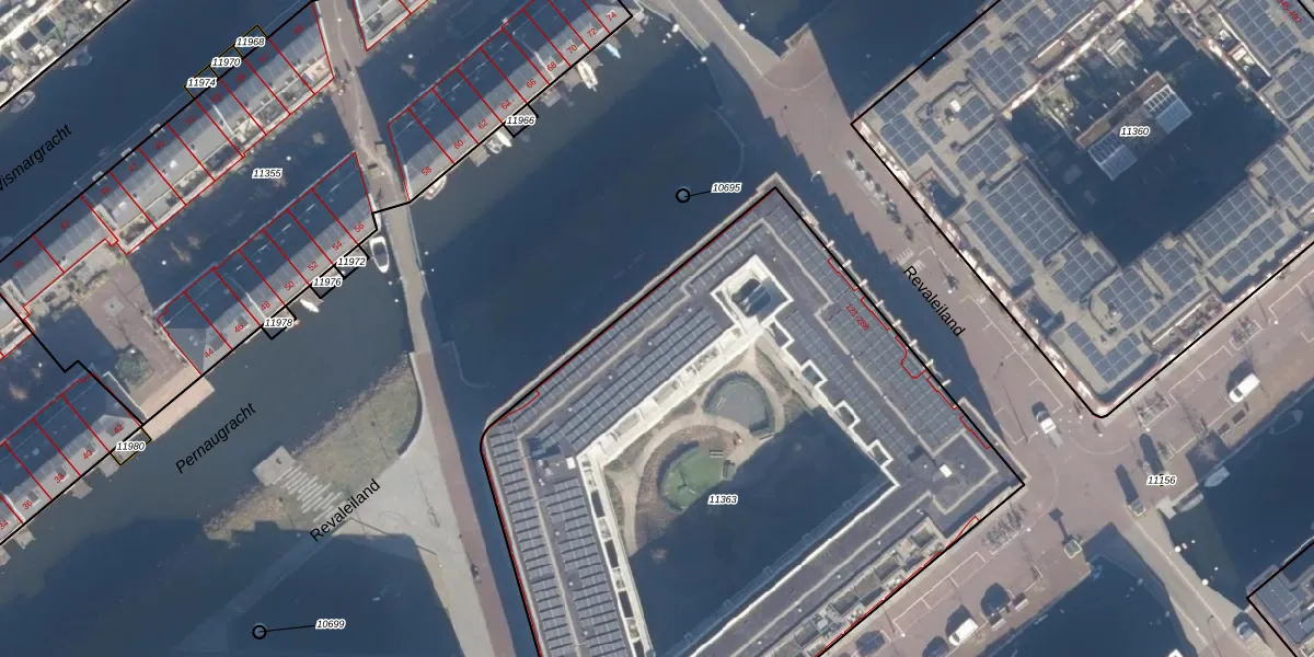Het perceel waarop Revaleiland 141 staat heeft een oppervlakte van 4265 m². Dit is een zeer groot perceel. De perceeloppervlakte wordt geregistreerd door het Kadaster. Gedetailleerde informatie over de maten van dit perceel kunt u vinden in het rapport Kadastrale kaart met maatvoering van Revaleiland 141.
