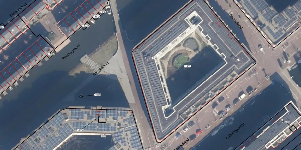 Het perceel waarop Revaleiland 177 staat heeft een oppervlakte van 4265 m². Dit is een zeer groot perceel. De perceeloppervlakte wordt geregistreerd door het Kadaster. Gedetailleerde informatie over de maten van dit perceel kunt u vinden in het rapport Kadastrale kaart met maatvoering van Revaleiland 177.