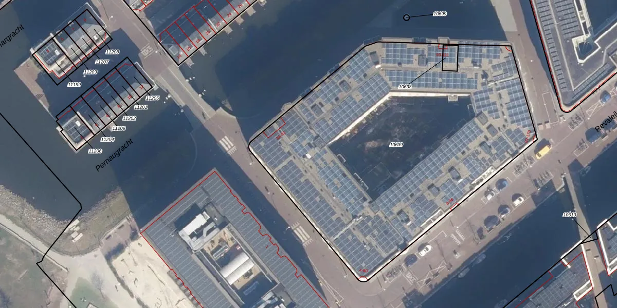 Het perceel waarop Revaleiland 19 staat heeft een oppervlakte van 4366 m². Dit is een zeer groot perceel. De perceeloppervlakte wordt geregistreerd door het Kadaster. Gedetailleerde informatie over de maten van dit perceel kunt u vinden in het rapport Kadastrale kaart met maatvoering van Revaleiland 19.