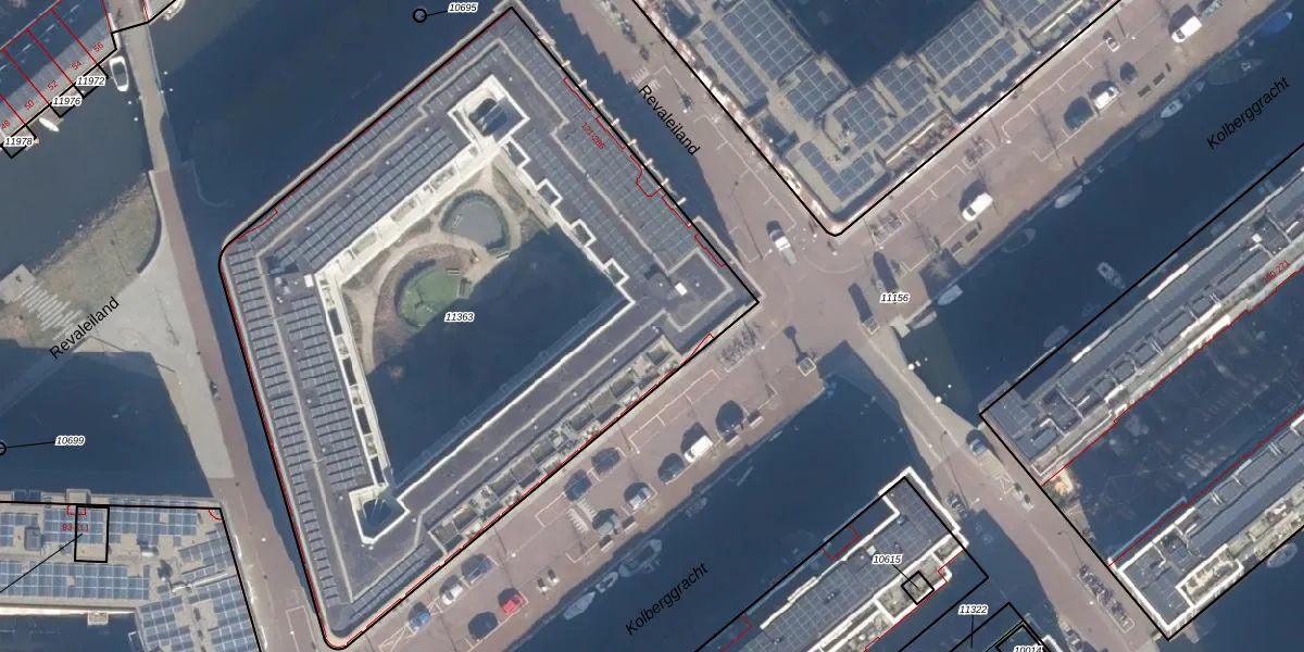 Het perceel waarop Revaleiland 218 staat heeft een oppervlakte van 4265 m². Dit is een zeer groot perceel. De perceeloppervlakte wordt geregistreerd door het Kadaster. Gedetailleerde informatie over de maten van dit perceel kunt u vinden in het rapport Kadastrale kaart met maatvoering van Revaleiland 218.