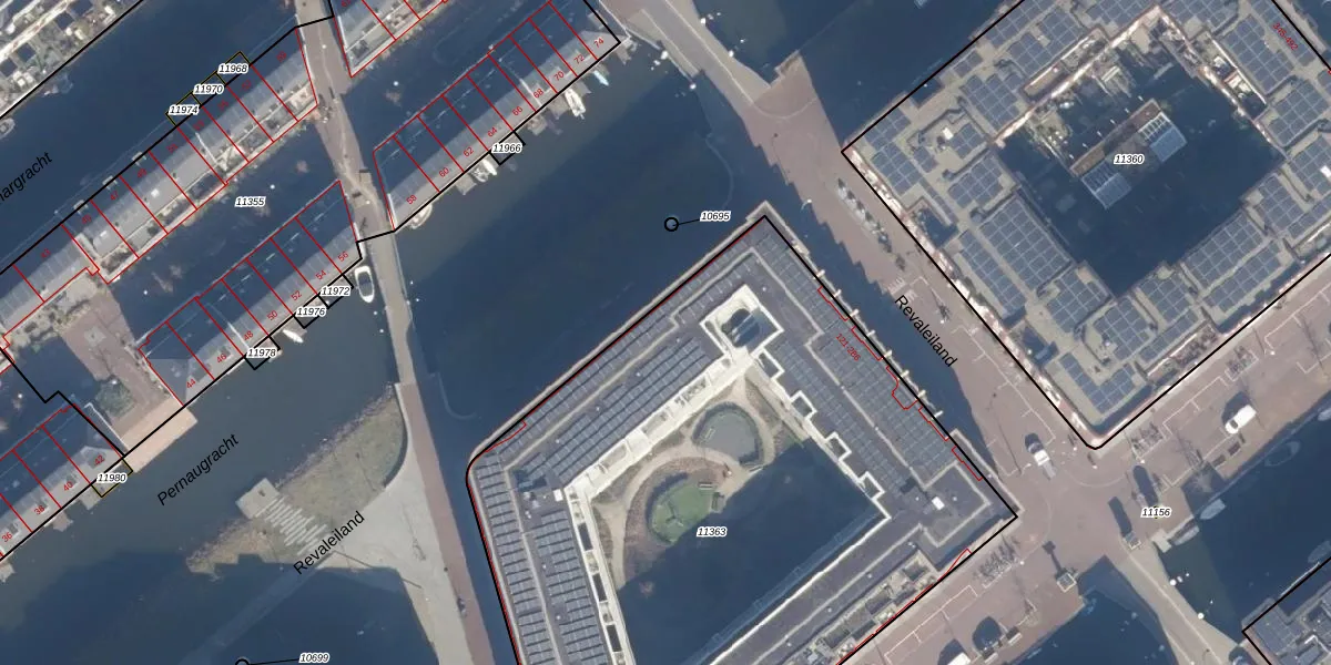 Het perceel waarop Revaleiland 219 staat heeft een oppervlakte van 4265 m². Dit is een zeer groot perceel. De perceeloppervlakte wordt geregistreerd door het Kadaster. Gedetailleerde informatie over de maten van dit perceel kunt u vinden in het rapport Kadastrale kaart met maatvoering van Revaleiland 219.