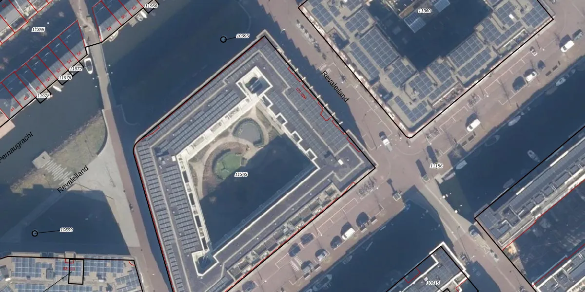 Het perceel waarop Revaleiland 272 staat heeft een oppervlakte van 4265 m². Dit is een zeer groot perceel. De perceeloppervlakte wordt geregistreerd door het Kadaster. Gedetailleerde informatie over de maten van dit perceel kunt u vinden in het rapport Kadastrale kaart met maatvoering van Revaleiland 272.