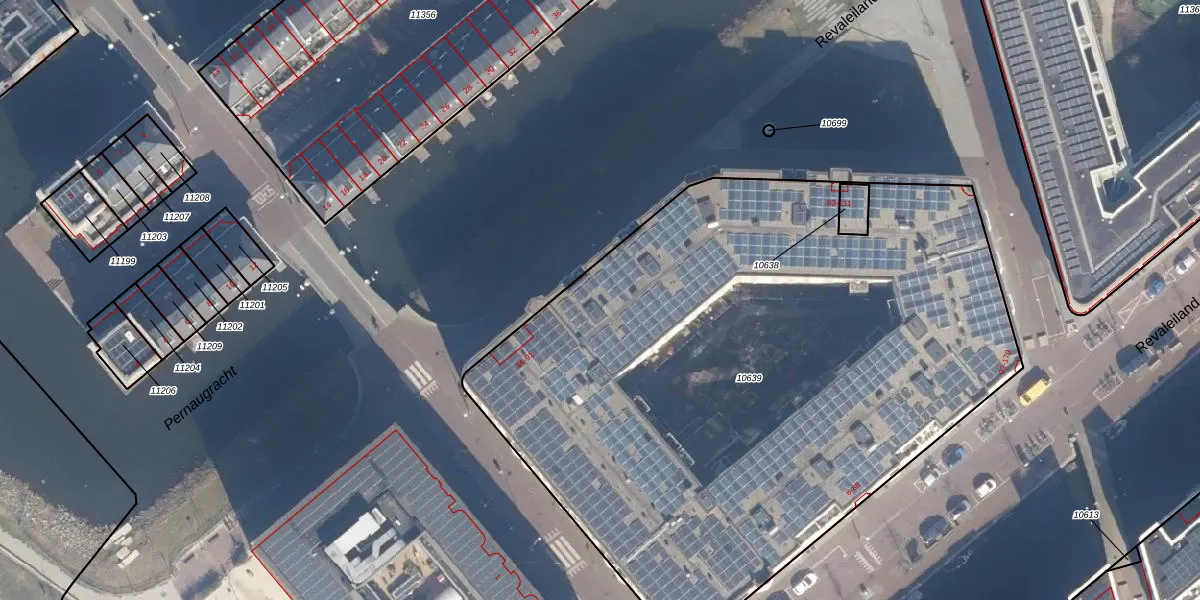 Het perceel waarop Revaleiland 35 staat heeft een oppervlakte van 4366 m². Dit is een zeer groot perceel. De perceeloppervlakte wordt geregistreerd door het Kadaster. Gedetailleerde informatie over de maten van dit perceel kunt u vinden in het rapport Kadastrale kaart met maatvoering van Revaleiland 35.