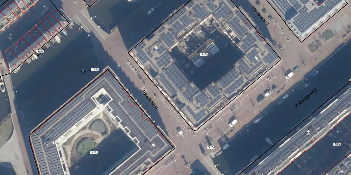 Het perceel waarop Revaleiland 385 staat heeft een oppervlakte van 3795 m². Dit is een zeer groot perceel. De perceeloppervlakte wordt geregistreerd door het Kadaster. Gedetailleerde informatie over de maten van dit perceel kunt u vinden in het rapport Kadastrale kaart met maatvoering van Revaleiland 385.