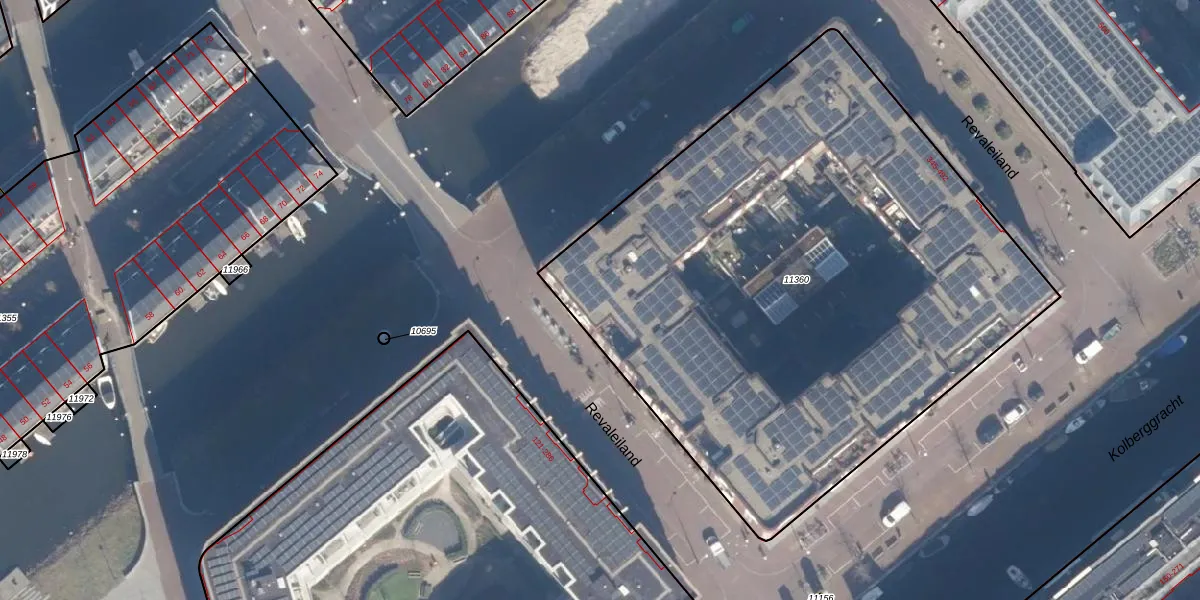 Het perceel waarop Revaleiland 405 staat heeft een oppervlakte van 3795 m². Dit is een zeer groot perceel. De perceeloppervlakte wordt geregistreerd door het Kadaster. Gedetailleerde informatie over de maten van dit perceel kunt u vinden in het rapport Kadastrale kaart met maatvoering van Revaleiland 405.