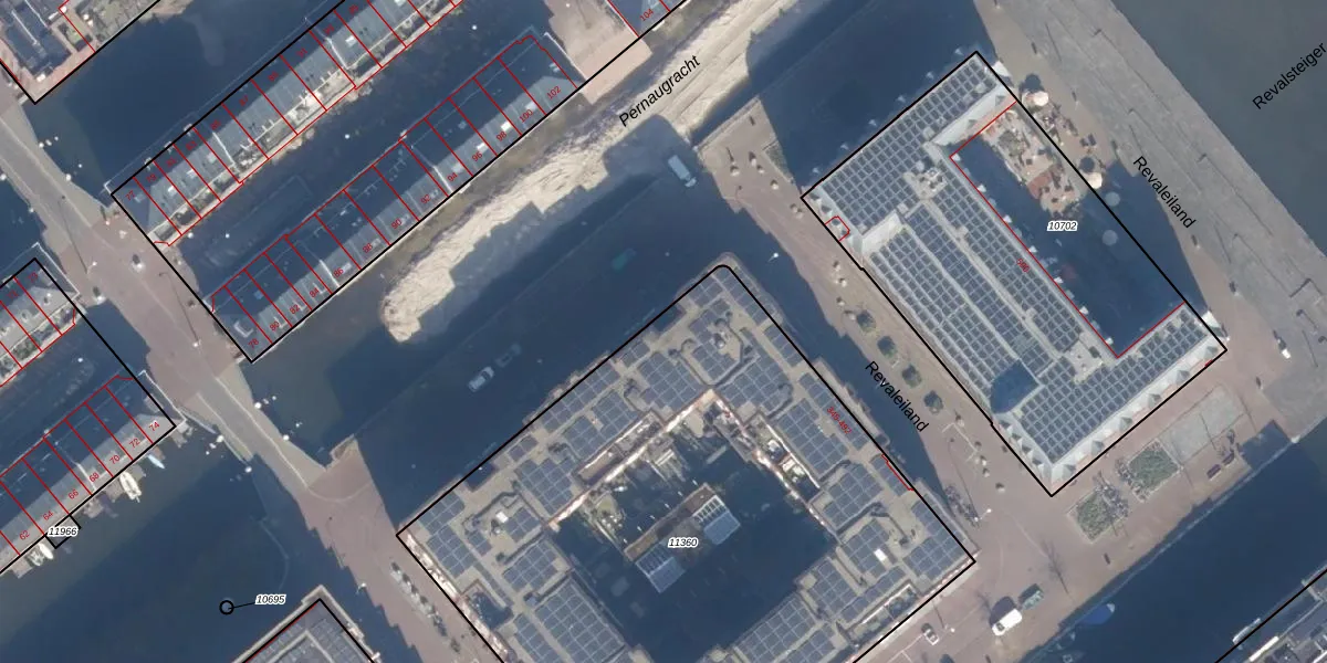 Het perceel waarop Revaleiland 445 staat heeft een oppervlakte van 3795 m². Dit is een zeer groot perceel. De perceeloppervlakte wordt geregistreerd door het Kadaster. Gedetailleerde informatie over de maten van dit perceel kunt u vinden in het rapport Kadastrale kaart met maatvoering van Revaleiland 445.